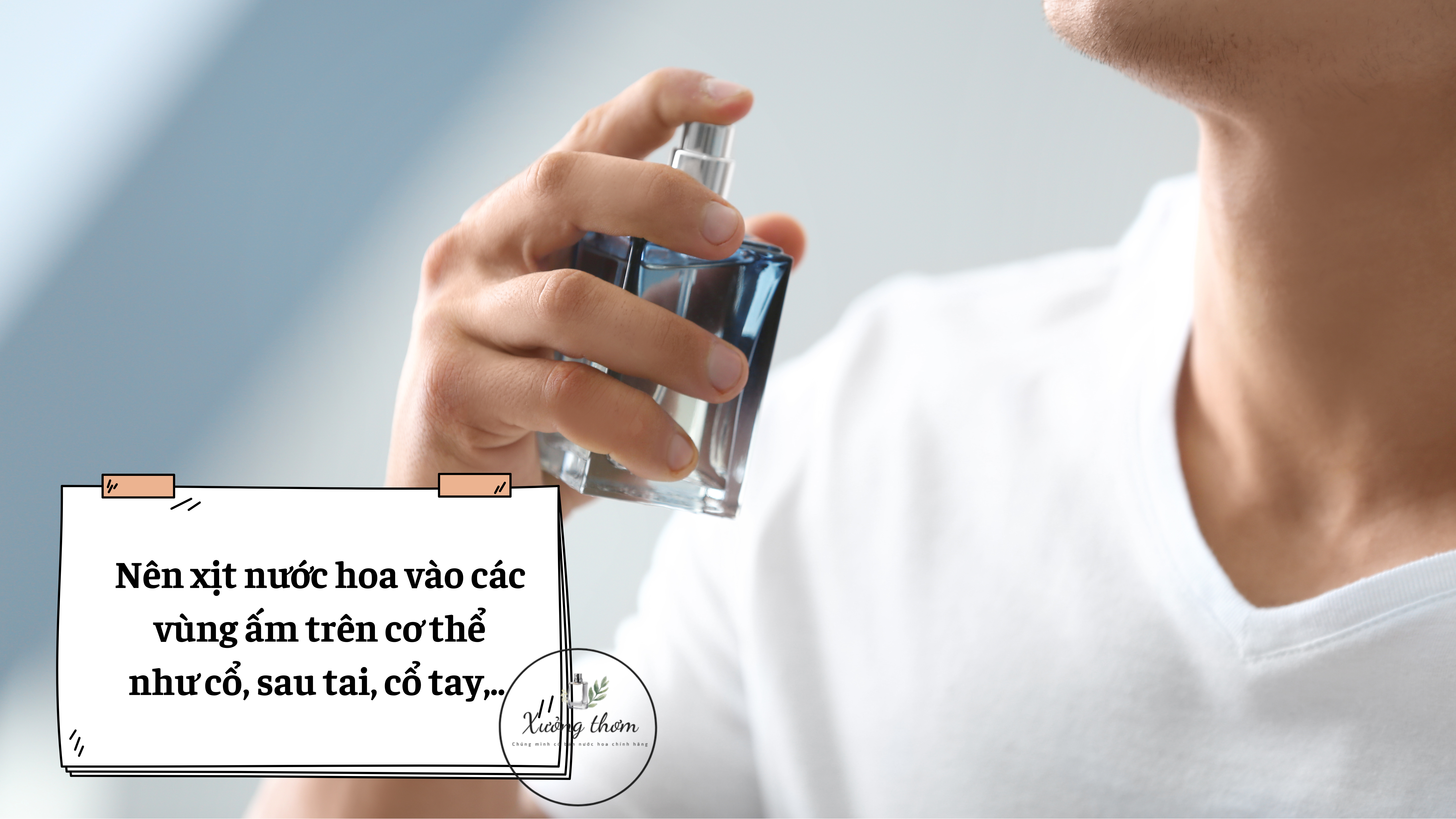 - Xịt nước hoa vào những vùng ấm trên cơ thể: Những điểm này là nơi mạch máu gần bề mặt da hơn, làm nhiệt độ cao hơn và giúp hương thơm khuếch tán tốt hơn. Các điểm này thường là sau tai, cổ tay, bên trong khuỷu tay,..